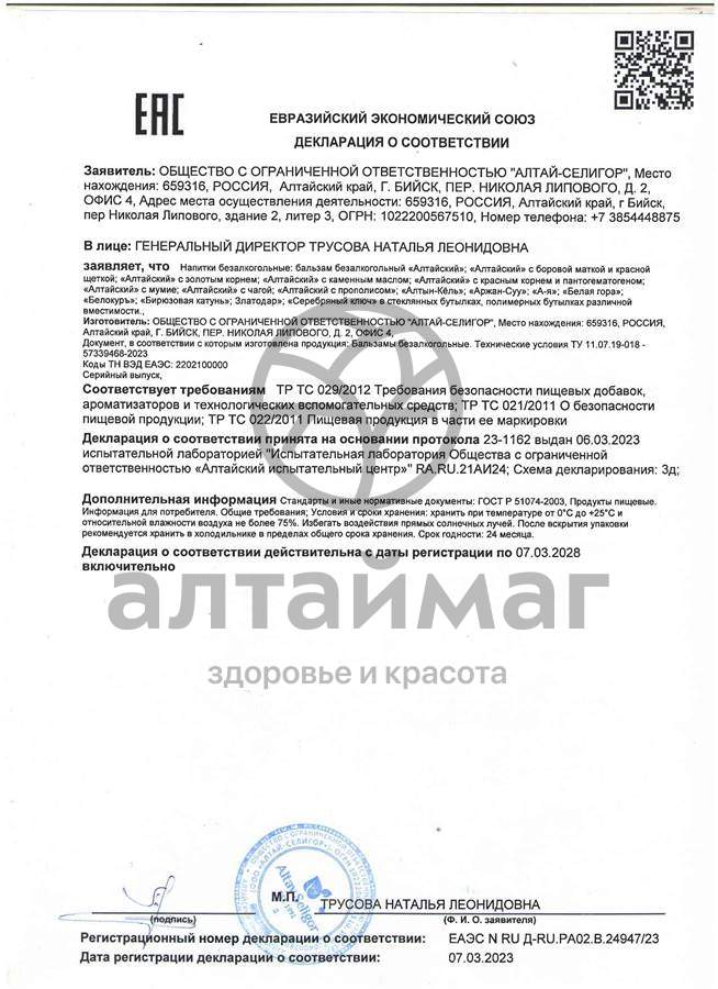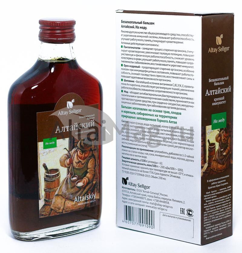 Безалкогольный бальзам Алтайский на меду производителя "Алтай-Селигор".