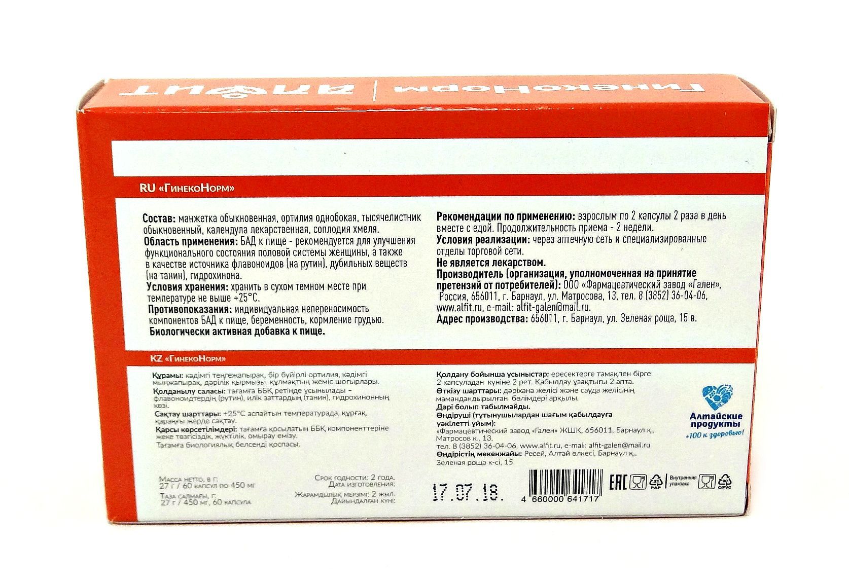 - Купите Гинеконорм 60 капсул в Казани по доступной цене 472 ₽ с доставкой на дом или заберите Ваш заказ в Казани из ближайшего пункта выдачи, сделав заказ на AltaiMag.ru.