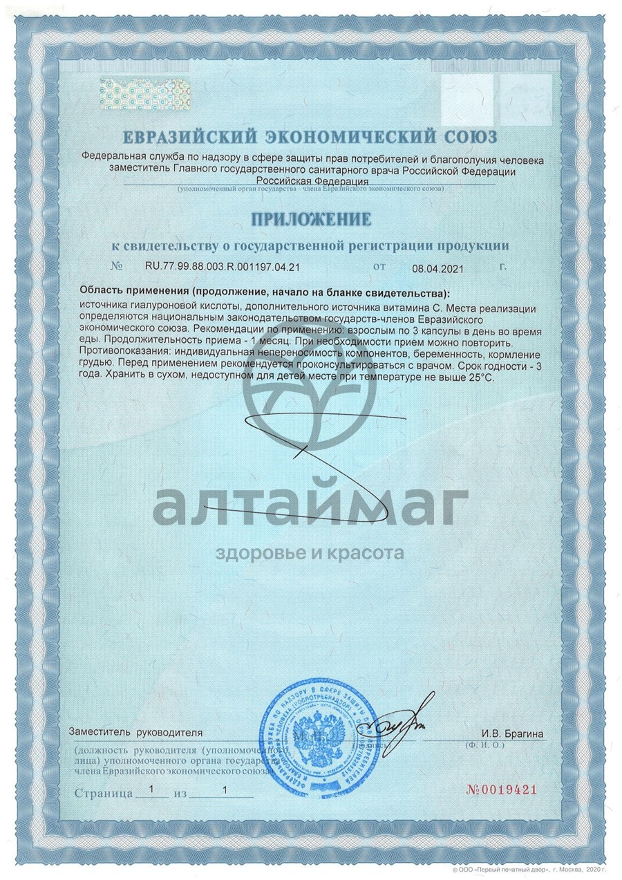 Гидролизат рыбного коллагена, гиалуроновая кислота, витамин С (L-Аскорбиновая кислота)Способ применения