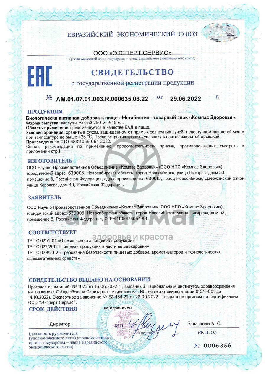 - Чтобы купить Метабиотик Компас здоровья 30 капсул совершите всего несколько шагов: укажите количество продукта и нажмите на кнопку «Купить».